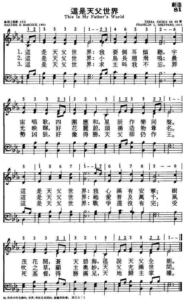 《新编赞美诗》收录在第27首《天父世界歌》